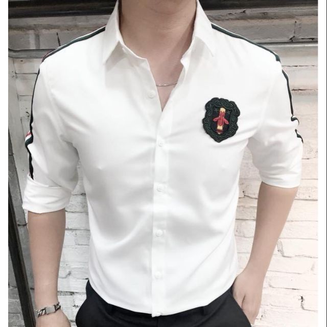 Áo sơ mi lụa nam thêu họa tiết - Dài tay