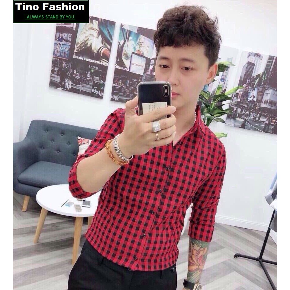 Áo Sơ Mi Nam CARO Cao Cấp Chuẩn Hàng Shop Tino Fashion - Dài tay