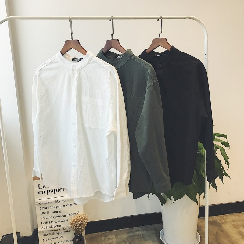 Áo Sơ Mi Nam Dài tay Thô Đũi Cổ Trụ Style Hàn Quốc (có kèm video và ảnh thật) - Dài tay