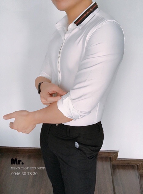 áo sơ mi nam hàn quốc vải lụa cao cấp - Dài tay