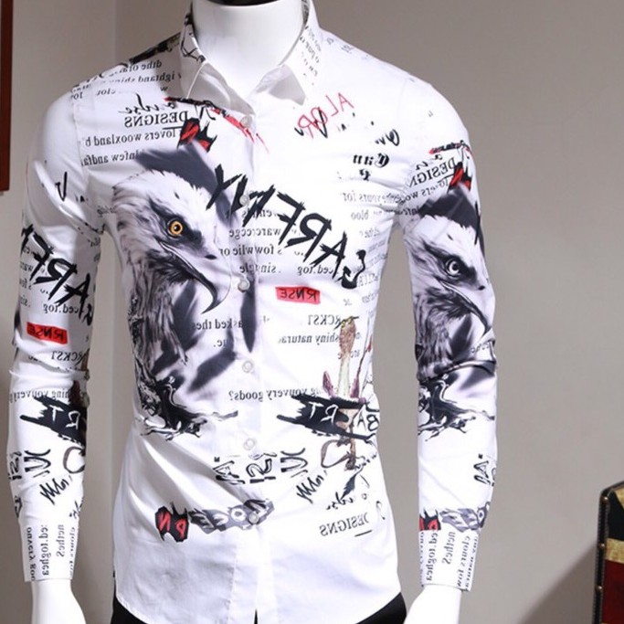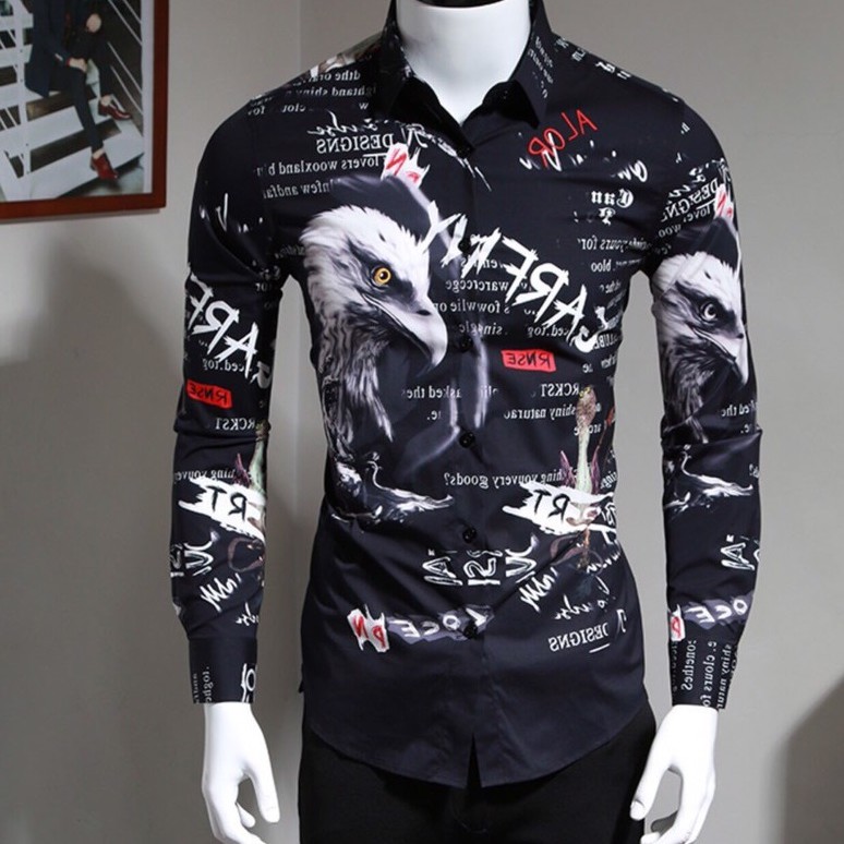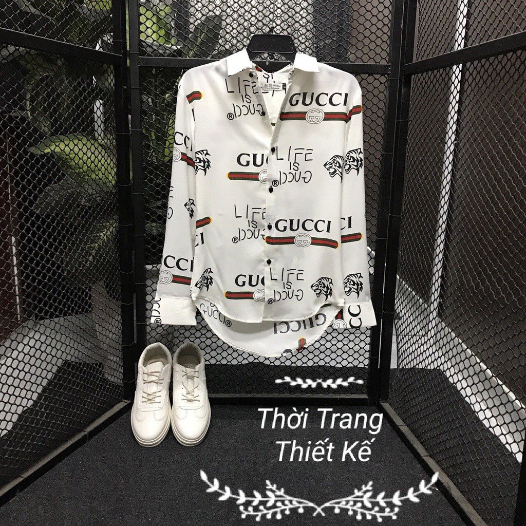 Áo sơ mi nam họa tiết áo sơ mi nam from rộng áo sơ mi nam hàn quốc vải lụa cao cấp - Dài tay