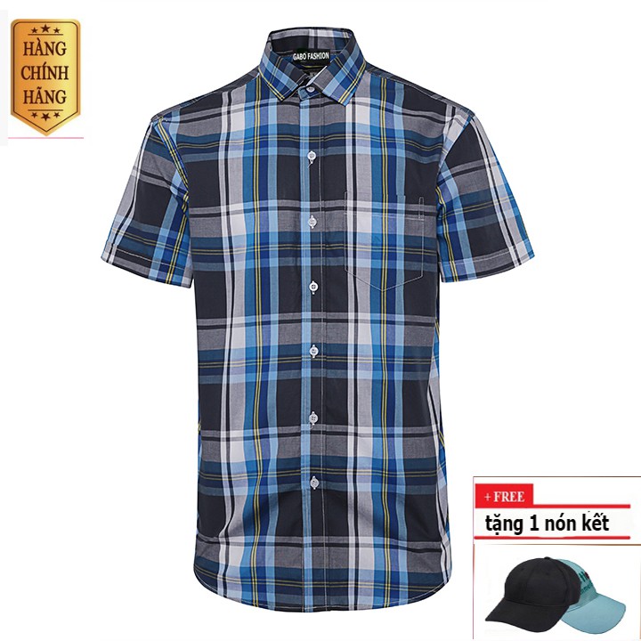 Áo Sơ Mi Nam Ngắn Tay Sọc Caro GABO SMI037 - Tặng 1 nón cao cấp - Ngắn tay