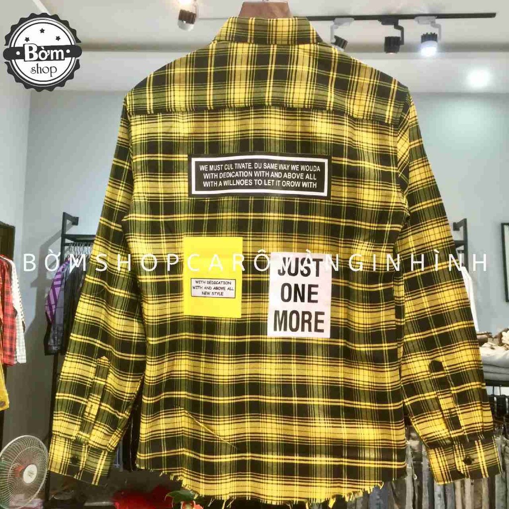 Áo sơ mi nam sọc caro vuông just one more màu vàng - Dài tay