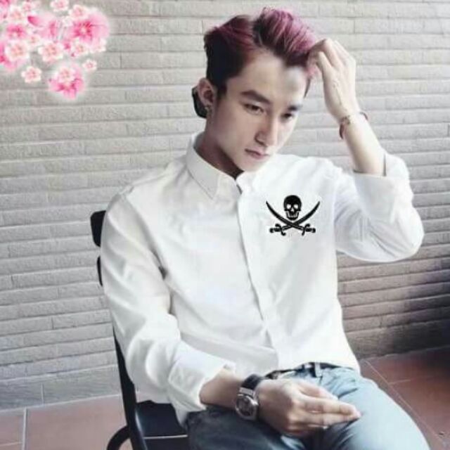 Áo sơ mi nam thêu thời trang tay dài vải lụa thái không nhăn - Dài tay