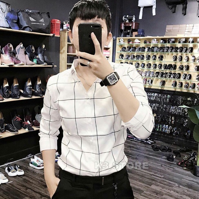 Áo sơ mi nam trắng kẻ ô phong cách sang trọng - Dài tay