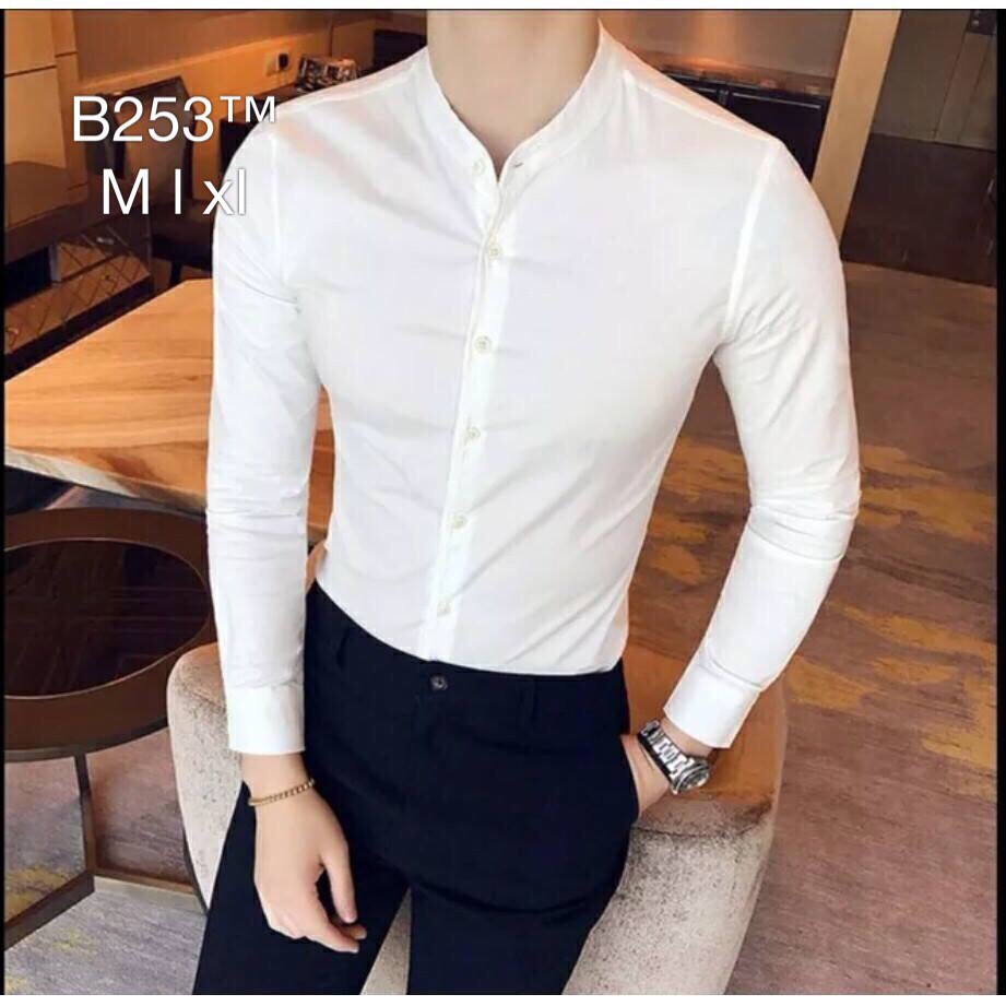 Áo sơ mi nam trơn cổ trụ - Dài tay