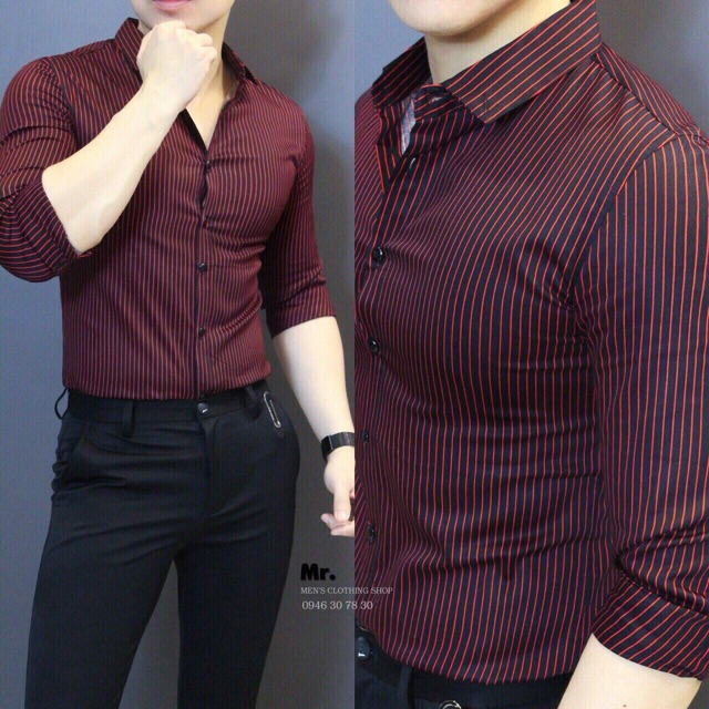 Áo Sơ Mi Sọc Nam Chất Cực Đẹp - Áo ngắn tay không cổ