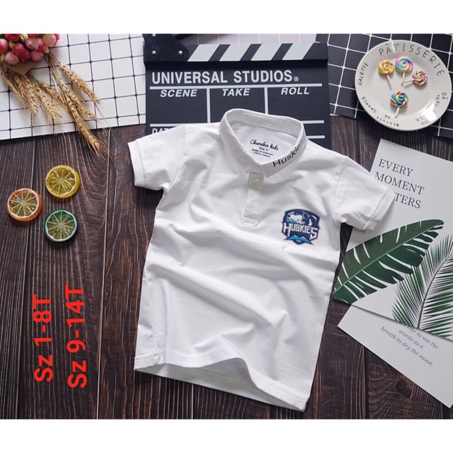 ️Áo thun cho bé cổ trụ thêu đắp logo Size từ 1-14 tuổi (10-45kg) Có 2 màu: trắng, xanh dương #Shopcothangtu