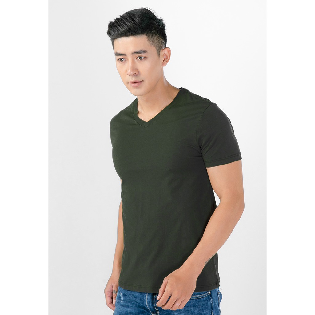 Áo thun nam cổ tim cao cấp thoát nhiệt nhật bản rêu đậm - Áo ngắn tay không cổ