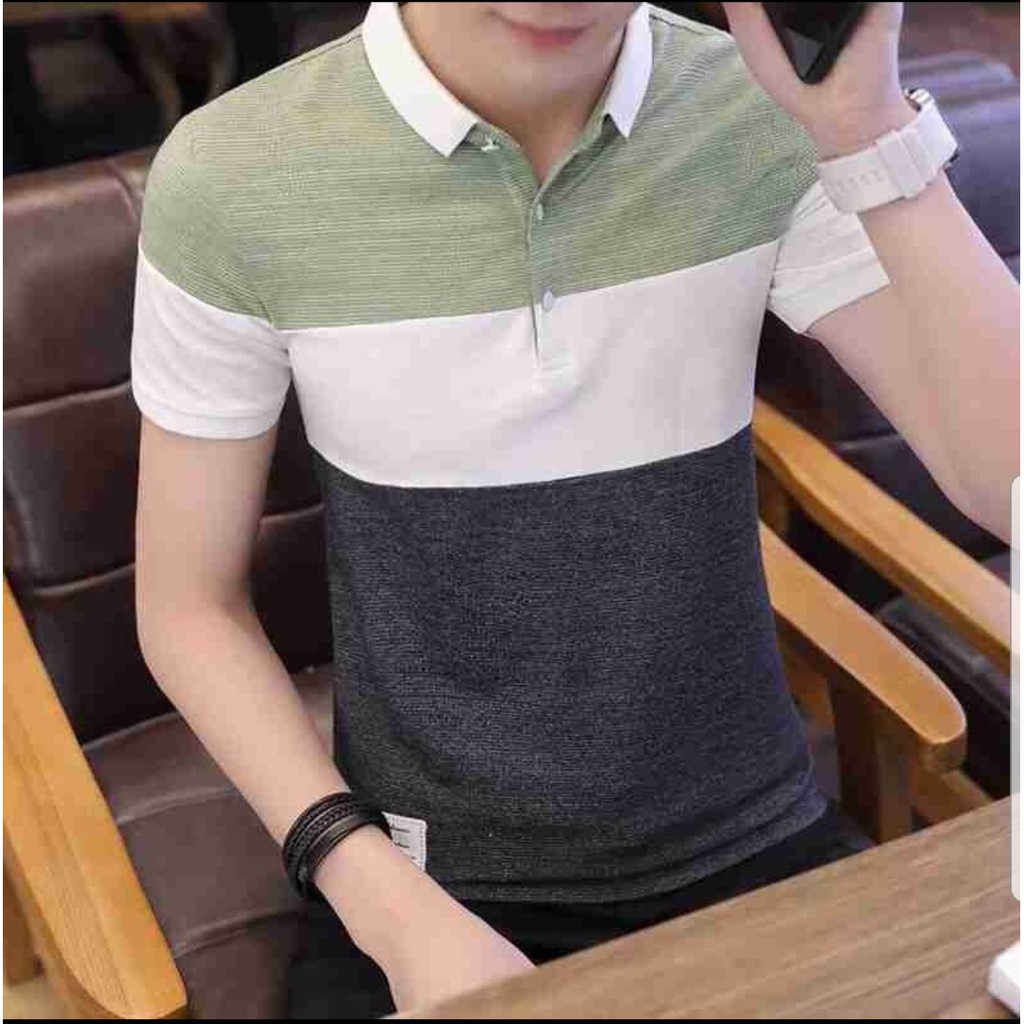 áO Thun Nam Tay Ngắn Cổ Trụ Cao Cấp Ba Màu Xanh Trắng Xám Cao Cấp Teen Group 2 - Áo ngắn tay có cổ
