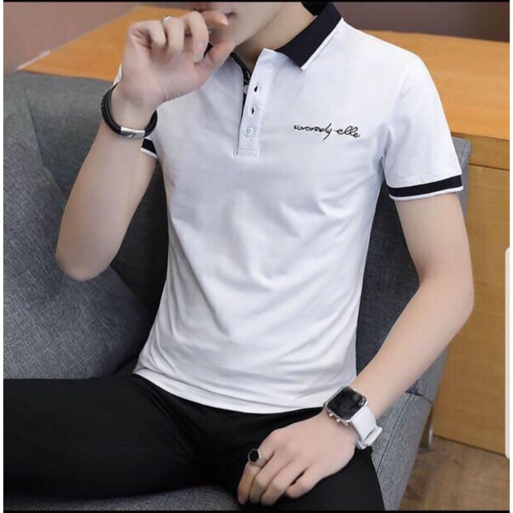 áO Thun Nam Tay Ngắn Cổ Trụ Chữ Wondy Màu Trắng Cao Cấp Teen Group - Áo ngắn tay có cổ