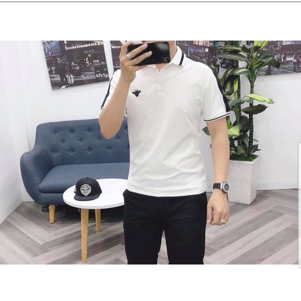 áO Thun Nam Tay Ngắn Cổ Trụ Logo Ong Trắng Cao Cấp Teen Group - Áo ngắn tay có cổ