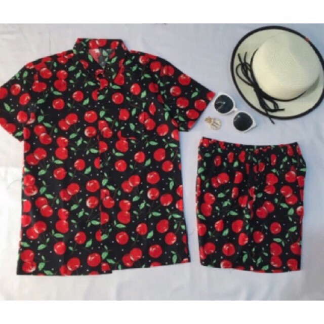 Áo Trái cây đi chơi, đi biển mẫu cherry nền đen