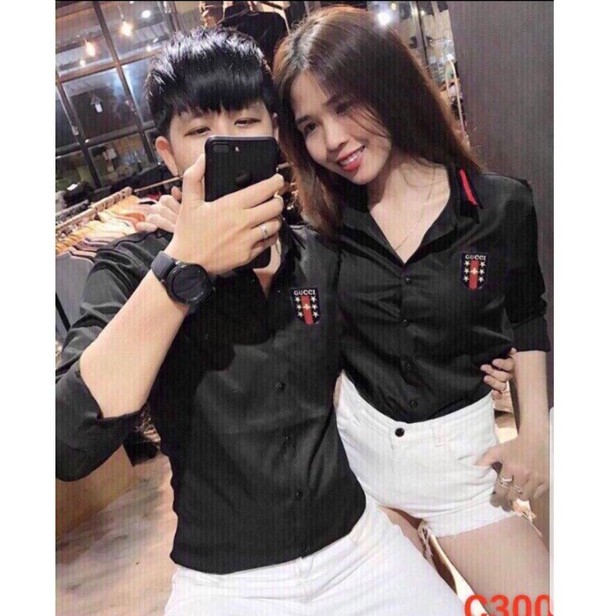 áosơ mi nam chất lụa dài tay phối logo cucci hai màu đen - trắng MS 29 - Dài tay