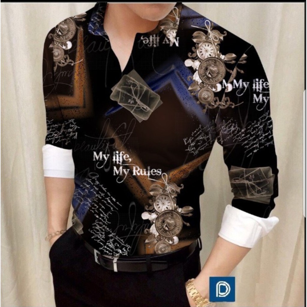 Áosơ Mi Nam Chất Lụa Phối MY LIKE MY RUIES ĐEN - TRẮNG, Hàng Xưởng Giá Tốt - Teen Group 2 - Dài tay