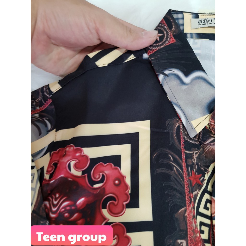 áosơ mi nam nữ chất lạu dài tay phối hoa văn đỏ vàng MS 23 - Dài tay