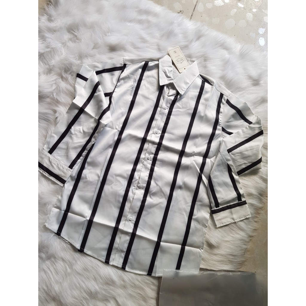 áosơ mi nam nữ chất lụa dài tay sọc đứng lớn cá tính MS 12 - Dài tay