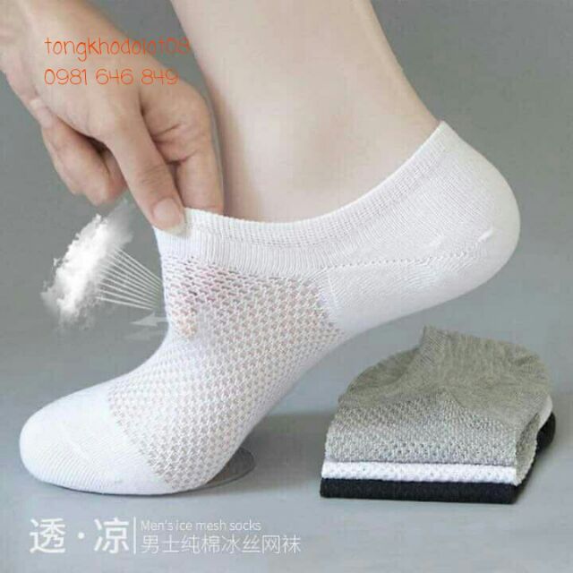 ️Tongkhodolot08- Chuyên sỉ lẻ thời trang mẹ và bé,đồ gia dụng thông minh Địa chỉ: số 11, ngách 193/220 đường Phú Diễn, Bắc Từ Liêm, Hà Nội Hotline: 0906 237 636- 0367 019 689 Khách sỉ, sỉ sll ib zalo 0367 019 689- 0981 646 849 hoặc liên hệ hotline ------------------------------- TẤT LƯỚI NAM THÔNG HƠI THOÁNG KHÍ Chất liệu: sợi cotton bông mềm mại, thấm hút mồ hôi Thiết kế dệt dạng lưới, lỗ thoáng ngăn ngừa hôi chân hiệu quả, công nghệ dệt sợi nano kháng khuẩn, khử mùi Cổ tất ôm gọn, chống tụt hiệu quả Màu sắc:.đen, ghi trắng LƯU Ý: - Hướng dẫn đặt mua nhiều màu, mẫu, kích thước trong 1 đơn hàng: Quý khách phải chọn màu, mẫu hoặc kích thước muốn rồi cho vào giỏ hàng. Sau khi chọn đủ thì vào giỏ hàng để tiến hành mua hàng. Có thể điều chỉnh số lượng mua trong giỏ hàng nếu muốn. Đối với các sp shop phân loại màu Quý khách có thể đặt số lượng rồi ghi chú màu,sz để shop nhặt hàng, các sản phẩm shop giao màu ngẫu nhiên Quý khách vui lòng không ghi chú chọn màu. Tongkhodolot08 xin chân thành cảm ơn và Kính chúc Quý khách trải nghiệm mua sắm thú vị cùng shopee.vn