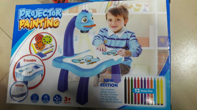 ️Chi tiết sản phẩm Bộ đèn bàn máy chiếu tập vẽ cho bé được làm hoàn toàn bằng loại nhựa ABS chuyên dùng sản xuất đồ chơi trẻ em, đặc biệt không chứa các chất độc hại ảnh hưởng đến sức khỏe của bé. Với chiếc đèn học máy chiếu mini, qua những lăng kính của máy chiếu, bé yêu dường như trở nên tự tin, năng động hơn, tăng cường khả năng diễn đạt và lối kể chuyện, luôn tìm tòi và khám phá thế giới xung quanh. Đặc biệt qua những hình ảnh được chiếu lên mặt bàn, bé sẽ học vẽ hình các con vật, tập tô màu, để nhận biết các màu sắc có thể phát triển tư duy sáng tạo, phẩm chất nghệ thuật cho trẻ ngay từ bé. Hướng Dẫn Sử Dụng: - Bộ sản phẩm chạy bằng 3 pin tiểu. Công tắc điều khiển được thiết kế thành hình chiếc chiếc sừng nhỏ xinh của chú khủng long ăn cỏ ngộ nghĩnh với 2 nấc, dịch chuyển 1 nấc đèn sẽ sáng, dịch chuyển nấc tiếp theo đèn sẽ phát ra tiếng nhạc du dương khiến bé yêu vô cùng thích thú. - Bộ đèn học vẽ gắn kèm 3 vòng tròn như những cuộn phim có những hình ảnh con vật đáng yêu hay hình ảnh những đồ vật thân thuộc. Khi chèn vào phần đầu, chiếc đèn học sẽ biến thành một chiếc máy chiếu thần kì chiếu ra các hình vẽ của hình mẫu giúp bé yêu tìm tòi khám phá thế giới và tô lại những hình ảnh được hiện ra trên mặt bàn trắng hoặc tự vẽ sang vở trắng với những sắc màu đa dạng của bút vẽ. - Phía dưới đèn có một chốt điều chỉnh độ nét của hình ảnh được chiếu ra giúp bảo vệ độ an toàn cho đôi mắt của bé. - Ngoài ra, ở mỗi hình mẫu còn in kèm cả từ vựng tiếng anh thông dụng giúp bé làm quen với tiếng Anh ngay từ nhỏ. - Mặt bàn được làm bằng chất liệu giống như bảng phooc khi vẽ trực tiếp lên bàn, bé có thể dễ dàng dùng khăn lau sạch. Thông tin kỹ thuật: - Sản phẩm: Bộ đèn bàn máy chiếu tập vẽ cho bé - Công dụng: Giúp bé tập vẽ, tăng cường tư duy, khả năng nhận biết màu sắc, con vật... - Bao gồm: 1 đèn bàn máy chiếu, 1 cuốn vở vẽ 10 trang, 24 hình mẫu đặt trong 3 màn chiếu hình tròn, 1 bộ bút nước vẽ và khăn lau - Đối tượng sử dụng: Dành cho bé trên 3 tuổi - Chất liệu: Nhựa - Màu sắc: Xanh Kích thước: 25cm x 21cm x 34.5cm