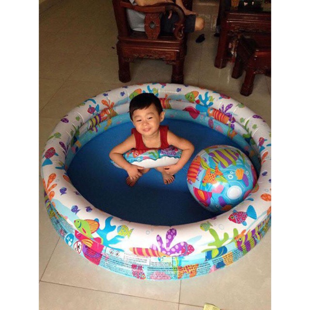 ️Mô tả : – Tên sản phẩm: Bể bơi Intex 3 tầng 3 chi tiết 59469 – Chất liệu: PVC – Kích thước: 132x28cm bể bơi; bóng và phao bơi đường kính 51cm – Trọng lượng: 800g – Sản phẩm chính hãng của Intex – Lưu ý: Khi cho bé chơi với nước, bố mẹ nên hòa thêm chút muối vào nước để khử trùng tránh các bênh mắt mũi cho bé.
