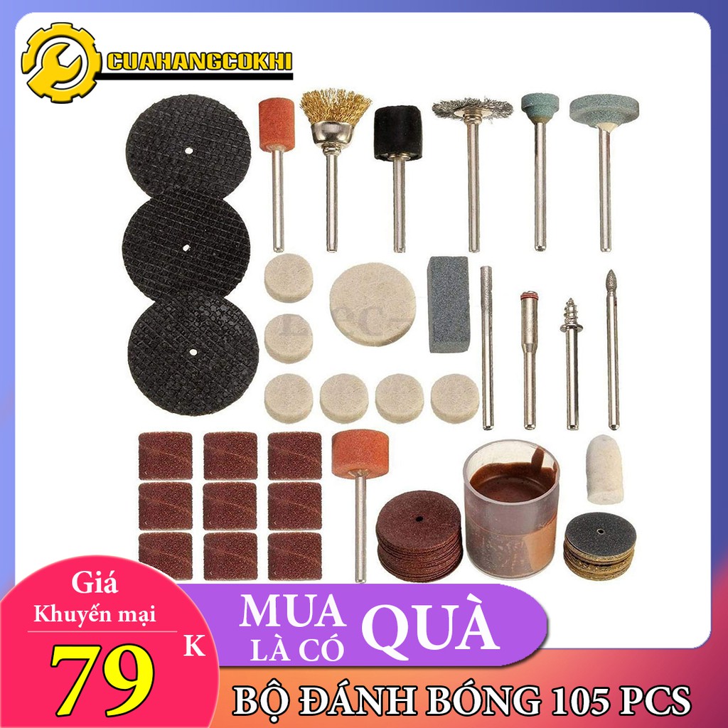 ️Bộ 105 món đồ nghề phụ kiện cắt, mài, chà, đánh rỉ sét, đánh bóng cho khoan điện đa năng mini cầm tay Bộ phụ kiện mài khắc mini 105 chi tiết là bộ phụ kiện hỗ trợ đắc lực cho các bác làm điêu khắc, khoan, khắc... yêu cầu độ chính xác cao. Với 105 chi tiết của trên 10 loại công cụ khác nhau, bộ phụ kiện máy mài khắc này có thể đáp ứng mọi nhu cầu về mài, khắc đánh bóng trong quá trình gia công chế tác. Với bộ phụ kiện mài khắc mini 105 chi tiết này việc chà sơn, đánh bóng những công cụ đã cũ để sơn lại trở nên vô cùng dễ dàng. Hay những công việc tưởng chừng như mất thời gian trong nhà bạn như việc mài dao, kéo cũng nhanh chóng được hoàn thành khi bạn có trong tay một chiếc máy mài khắc mini và bộ công cụ này. Bộ phụ kiện bao gồm: Bàn chải thép 1 ngang, 1 đứng; chúng có nhiệm vụ chà, đánh bay những lớp sơn cũ trên sản phẩm hay tạo những vết xước lớn trong quá trình mài để cho việc chà nhám được dễ dàng hơn. 2 hộp giấy nhám loại min. dùng để chà phẳng bề mặt, chuẩn bị cho khâu đánh bóng. Kim mài kim loại – dùng để tạo hình, chà phẳng kim loại Vòng đánh bóng 1 hộp bột mài 4 đầu mài tạo hình kim loại Trục giữ lưỡi cắt và dụng cụ taro tạo ren – đây là 2 công cụ không thể thiếu trong bất kỳ bộ phụ kiện mài khắc mini nào Đá mài lưỡi cắt, lưỡi dao Vòng giấy nhám (giấy giáp) các loại Trục lắp giấy nhám #tranham #maibong
