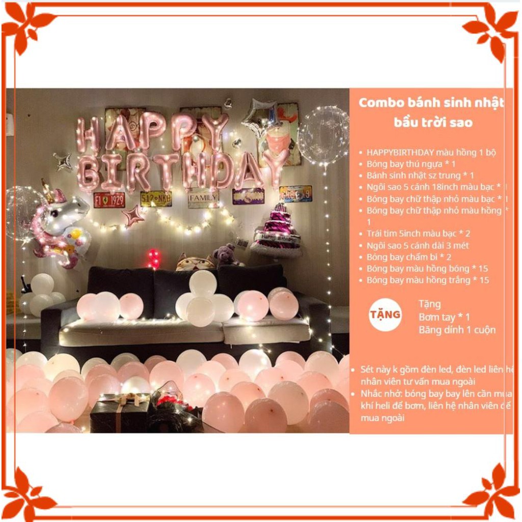 ️Thông tin sản phẩm:HÀNG CÓ SẴN TẠI SHOP ----Set 19 :Com bo sinh nhật hoa 5 cánh HAPPYBIRTHDAY 1 bộ Ngôi sao 5 cánh 18inch màu vàng * 2 Bánh sinh nhật 3 tầng * 1 Bông hoa 18inch màu hồng * 2 Ngôi sao 5 cánh 10inch màu hồng * 2 Ngôi sao 5 cánh 5inch màu xanh da trời * 1 Ngôi sao 5inch màu bạc * 1 Ngôi sao 5inch màu đỏ hồng * 1 Cánh hoa hồng * 1 túi Bóng bay màu vàng bóng * 5 ----Set 20 :Combo sinh nhật bóng châu quang HAPPYBIRTHDAY 1 bộ Bóng bay châu quang màu trắng * 10 Bóng bay châu quang xanh da trời * 10 Bóng bay châu quang xanh da trời đậm * 10 Ngôi sao buông ruy băng *30 ----Set 21:Combo sinh nhật nốt nhạc HAPPYBIRTHDAY màu sâm panh 1 bộ Chai rượu màu hồng * 1 Bánh sinh nhật 3 tầng * 1 Bóng bay số 18 (có thể chọn số) Trăng khuyết * 1 Ngôi sao 5 cánh 18inch * 1 Nốt nhạc đơn * 1 Nốt nhạc kép * 2 Ngôi sao 5 cánh 5inch màu hồng * 2 Ngôi sao 5 cánh 5inch màu bạc * 3 Bóng bay màu trắng bóng * 15 Bóng bay màu hoa hồng vàng * 15 ----Set 22:Combo sinh nhật hoa hồng bạch kim HAPPYBIRTHDAY hoa hồng bạch kim 1 bộ Chai rượu mẫu mới * 1 (chivas) Ly rượu mẫu mới * 1 sao Trái tim hoa hồng vàng 18inch * 2 Trái tim 18inch màu bạc * 1 Vương miện màu vàng cỡ lớn * 1 Ngôi sao 4 cánh 10inch *4 Ngôi sao 5 cánh 5inch *4 Bóng bay châu quang màu trắng * 20 Bóng bay châu quang hoa hồng vàng * 20 ----Set 23:Combo bánh sinh nhật bầu trời sao HAPPYBIRTHDAY màu hồng 1 bộ Bóng bay thú ngựa * 1 Bánh sinh nhật sz trung * 1 Ngôi sao 5 cánh 18inch màu bạc * 1 Bóng bay chữ thập nhỏ màu bạc * 1 Bóng bay chữ thập nhỏ màu hồng * 1 Trái tim 5inch màu bạc * 2 Dây ngôi sao 5 cánh dài 4 mét Bóng bay trong suốt * 2 36 in Bóng bay màu hồng bóng * 15 Bóng bay màu hồng trắng * 15 ----Set 24:Combo sinh nhật hào hoa hắc bạch + đèn LED HAPPYBIRTHDAY 1 bộ Chai rượu cỡ lớn * 1 xanh Ngôi sao 5 cánh 18inch màu bạc * 2 Ngôi sao 5 cánh 10inch màu bạc * 2 Cờ đuôi cá HPBD * 1 Bóng bay số 22 tuổi ( có thể lựa chọn số) Đèn LED * 1 bộ (bao gồm pin) Bóng bay châu quang màu trắng * 15 Bóng bay châu quang màu đen * 15 Lưu ý:Khách có nhu cầu mua thêm bóng số tuổi ở các set không có vui lòng chat với shop #bongsinhnhat #bóngbay #happybirthday #trangtrisinhnhat #trangtrisinhnhatchobe #trangtrínhàcửa #mẹvàbé #rèmtrangtrí #bónghappybirthday #rèmkimtuyến #trangtrínhàcửa #flashsale #Bóngsinhnhật #Bóngtrangtrí #bóngtrángnhôm #sétbóngsinhnhật #phụkiệnsinhnhật #mẹvàbé #shopeemall #rẻvôđịch