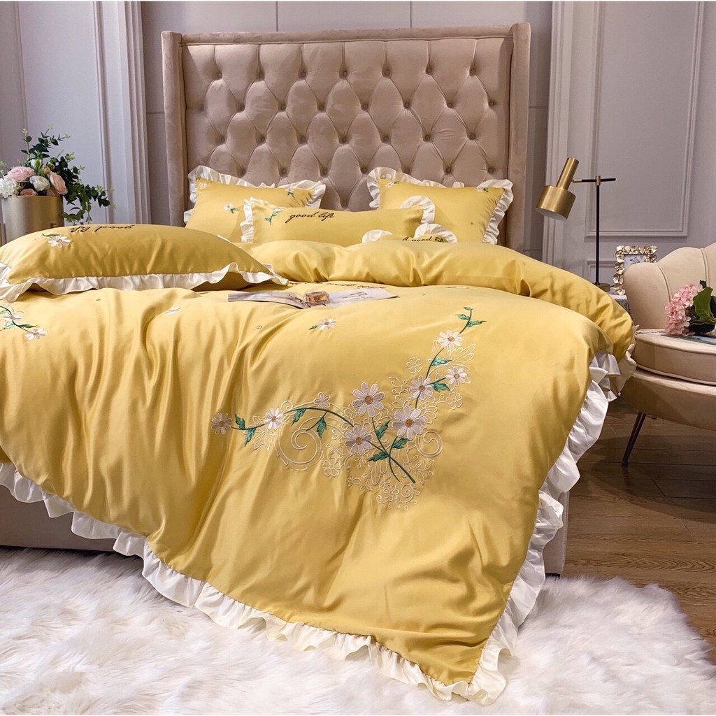 BỘ_CHĂN_GA_GỐI_4_mÓN_PHI_LỤA_HOA_THÊU_MÀU_VÀNG