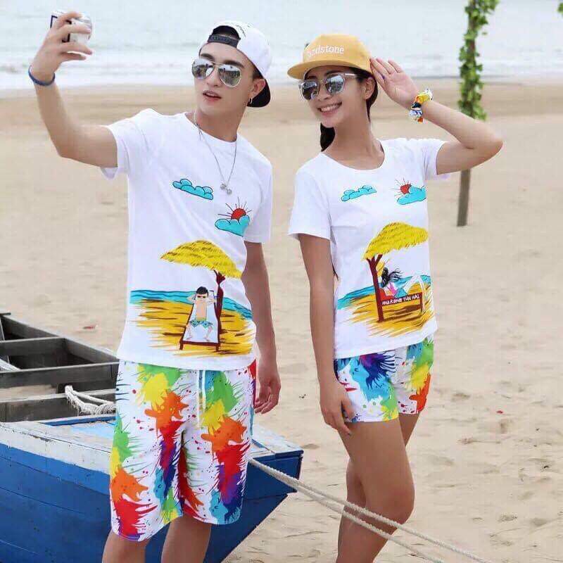 bộ đi biển nhóm ( áo + quần ) chất sịn