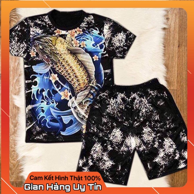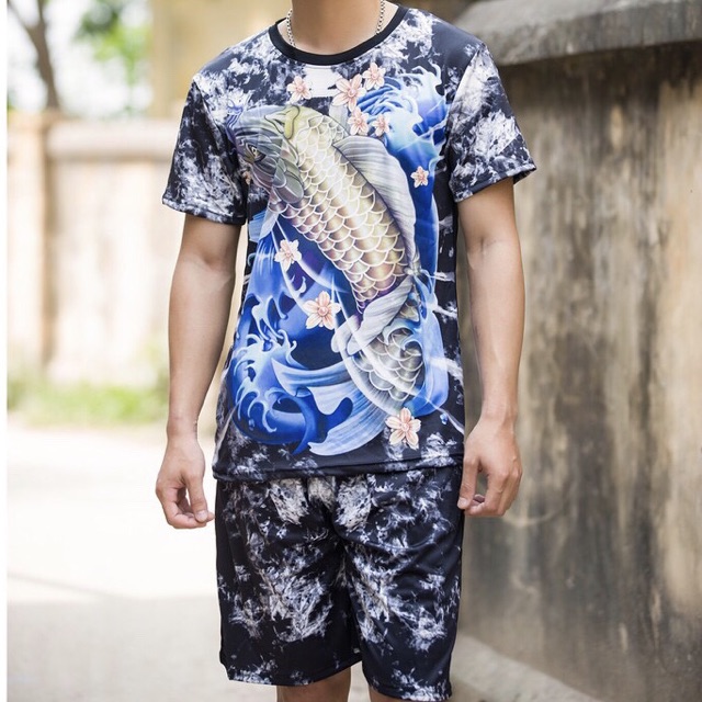 Bộ quần áo nam 3D cá chép xanh chất thun lạnh[FREESHIP+Tặng Vòng] - Bộ hè