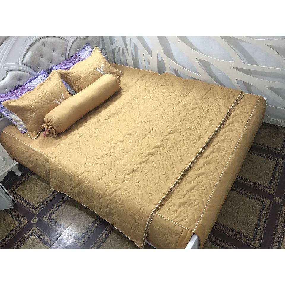 ️Bộ satin chun chuẩn đét từ đường chỉ trần đến chất liệu Bộ gồm 5 món : 1 chăn trần bông( lồng được ruột) 1 ga phủ trơn cỡ m6 hoặc m8 2 vỏ gối nằm kt 45x65cm 1 vỏ gối ôm kt 1m x 30cm Chất liệu satin, mát, mềm, mịn Đủ các màu sang chảnh phù hợp mọi lứa tuổi Đường trần cực chuẩn Giặt máy giặt thoải mái, không phai, không xù