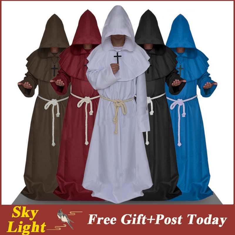 ️What in box:1x Cape with cap+Robe+Cross+Cotton rope Ship after order Size Length Bust Shoulder Suggest Height S 138cm 118cm 46cm 160-170cm M 148cm 122cm 47cm 170-175cm L 158cm 126cm 48cm 175-180cm XL 168cm 130cm 49cm 180-185cm