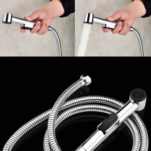 ️Chất liệu : nhựa ABS mạ crom & niken Kích thước : + Vòi xịt : dài 17cm + Dây dẫn nước : 120cm Trọng lượng : 110g Bảo hành 12 tháng