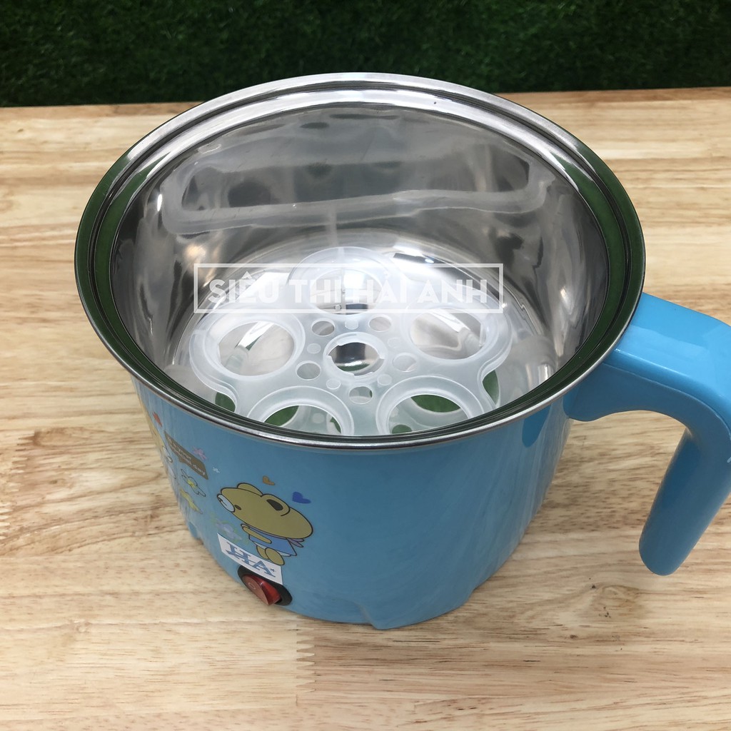 ️Ca nấu mì luộc trứng hấp thức ăn siêu nhanh ĐẶC ĐIỂM NỔI BẬT : Kích thước đóng hộp : 17.5 x 20 x 15 cm Kích thước sản phẩm : 17 x 17 x 13 cm Trọng lượng : 750 gr Điện áp : 220V/50Hz. Công suất :500W. Dung tích : 1.8L Nồi nấu, luộc trứng dùng để nấu canh,đun nước sôi,nấu mỳ,hấp đồ ăn.v.v.v Đường kính 18cm. Vung kính có vỉ hấp đồ ăn bên trong. Có công tắc tắt bật. Ca điện mầu có hấp , thích hợp cho cá nhân,ít người,nấu và hấp đồ ăn nhanh hoặc cho trẻ con và người già. Mã sản phẩm:Kích thước 18 cm MÔ TẢ SẢN PHẨM : Ca nấu luộc trứng tiện dụng giúp cho bạn có thể làm bữa sáng nhanh gọn. Chất liệu nhựa chịu nhiệt an toàn cùng với vỏ inox chống gỉ bên trong vô cùng an toàn trong quá trình sử dụng. Công tắc bật tắt dễ dàng mà không cần rút nguồn điện - Cấu tạo máy an toàn, dễ sử dụng + Thiết kế máy với ổ dây điện chuẩn 2 lớp cách điện an toàn + Vỏ nhựa cách điện dày, an toàn + Trọng lượng nhẹ, tiện di chuyển + Nấu nhanh, sạch và rất vệ sinh - Thiết kế đẹp mắt + Thiết kế với họa tiết dễ thương , ngộ nghĩnh + Sử dụng điện để nấu rất đơn giản Lưu ý + Bảo quản nơi khô ráo và thoáng mát Sự hài lòng của khách hàng duy trì sự phát triển của chúng tôi