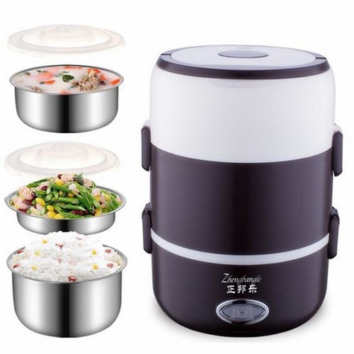 ️Điện áp : 220V/50 Hz Công suất 280W Dung tích 1,8 lít Vỏ hộp được làm từ Nhựa PP và khay inox cao cấp(không chứa chất BPA, an toàn cho sức khỏe bảo vệ môi trường) Sử dụng công nghệ vi áp ba chiều, hấp thực phẩm dinh dưỡng được hấp thụ dễ nhanh chóng Màu sắc: Nâu Kích thước: DxRxC=16.5x16.5x20.0cm Trọng lượng 1,54kg Nếu hôm nào không có nhu cầu sử dụng 3 tầng thì bạn có thể dùng 2 tầng rất tiện lợi và gọn nhẹ. Để 1 tầng ở nhà Hộp cơm sử dụng công nghệ vi áp ba chiều, làm nóng nhanh chóng chỉ 5-10 phút. Tuy nhiên nếu nhiều đồ ăncác bạn nên hâm khoảng 15 phút thì cơm và canh sẽ nóng hổi như vừa nấu xong .Bộ sản phẩm đầy đủ + 03 khay đựng thức ăn được làm bằng inox ̀n với sức khỏe người sử dụng. + 01 giá luộc trứng + 01 nắp đậy hộp cơm có khóa gài chắc chắn + 01 cốc đong + 02 nắp nhựa đậy khay ( 1 nắp chống tràn canh rất tốt) + 01 đế hâm nóng. + 01 dây nguồn + ếp nối. Cách sử dụng Hộp cơm hâm nóng cắm điện inox 3 tầng – Cho các thực phẩm vào các ngăn và đậy nắp chắc chắn và mang đi làm. (nhớ đậy nắp nhựa ở các khay để tránh bị rơi vãi đồ ăn ra ngoài) Hướng dẫn khi hâm nóng: – Lấy cốc nước đổ vào đế hấp (đế cuối cùng) theo một liều lượng khoảng (60ml) để hâm nóng đồ ăn. Sau đó cho các khay lần lượt theo thứ tự. – Cắm điện và bật công tắc, sau 10 phút là đồ ăn đã sẵn sàng nếu các bạn muốn nóng hơn thì có thể chuẩn bị trước 15 phút nhé.Nước sôi sẽ bốc hơi, qua đó làm nóng thức ăn đựng trong các ngăn (Nồi có tác dụng như chúng ta hấp đồ ăn hay hấp cách thủy) Lưu ý : Bạn không nên để nước hết đỉ trong đế hấp quá nhiều lần , như thế doăng cao xu chịu nhiệt sẽ rất nhanh bị co lại và rò nước xuống dưới. Tuy nhiên khó tránh khỏi quên hoặc đã bị như vậy vui lòng liên hệ trực tiếp với shop để được bảo hành Miễn Phí cho trường hợp này nhé! Ưu điểm vượt trội