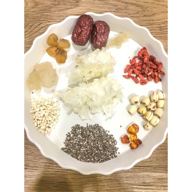 ️Mùa hè nóng nực thế này ăn gì cho mát cho đẹp cho bổ thì các bác hãy dành 1 góc nhỏ trong tim cho chè dưỡng nhan nhựa đào tuyết yến nhé Nhìn thành phần là biết nó mát nó bổ như thế nào rồi phải không ạ, công dụng của nó thì nhiều lắm lắm luôn ấy Mà cách nấu thì lại vô cùng đơn giản kể cả k có khiếu nấu ăn cũng có thể hoàn thành 1 cách xuất sắc các bác ạ Thêm một sự lựa chọn vô cùng tốt cho mùa hè này nhé ạ dùng được cho cả gia đình từ trẻ em trên 1 tuổi tới các cụ già luôn ạ ♥️ Chè dưỡng nhan: Sét 1:(25k) -➥ nhựa đào ?tuyết yến➥ hạt sen?táo đỏ?long nhãn ?kỷ tử➥ hạt chia ➥ ý dĩ➥ đường phèn Sét 2 đặc biệt (35k) : sét 1 + đông trùng hạ thảo ✅ Giúp Chống nhăn, Rạn da, sẹo thâm, rỗ -> Căng mịn da ✅ Giúp Giảm mỡ, no lâu, Giảm thèm ăn -> Hỗ trợ giảm cân ✅ Giúp Chống lão hóa, sạm nám da, đặc biệt với phụ nữ từ 28T ✅ Giúp Tăng cường hệ miễn dịch, phát triển trí não ở trẻ ✅ Giúp Giải độc, trị táo bón, rôm sảy, mẩn ngứa ở trẻ ✅ Giúp Ổn định chức năng gan, trị nóng trong người. ✅ Giúp Phục hồi những chức năng bị yếu, tăng sức đề kháng, giúp cho cơ thể chống lại được những bệnh tật xâm nhập, từ đó sẽ ăn uống ngon miệng và ngủ ngon Và còn nhiều công dụng khác nữa...... ✅ Chế biến: 1. Nhựa hoa đào, tuyết yến, hạt sen, ý dỹ ngâm từ 12h-14h cho nở đều rồi đãi sạch hết cặn bẩn, tạp chất 2. Long nhãn, táo đỏ, kỷ tử, nấm tuyết rửa sạch bụi bẩ ngâm 10-15p 3. Đun sôi 700-800ml nước rồi cho hạt sen, ý dĩ, táo đỏ, long nhãn vào đun khoảng 10p, sau đó cho nhựa đào, tuyết yến, hạt chia vào nồi, đun sôi khoảng 5 phút với lửa nhỏ 4. Cho đường phèn vào nồi, khuấy đều để đường tan hết rồi tắt bếp 5. Cho đông trùng hạ thảo vào Thưởng thức chè khi còn ấm hoặc thưởng thức lạnh ( Ngon hơn khi uống lạnh nhé). ??Công thức nấu đơn giản, nguyên liệu dễ tìm, còn chần chừ gì mà không nấu ngay món chè dưỡng nhan này cho cả gia đình. freeship từ 10 set mọi miền tổ quốc. Hạn sử dung: 6 tháng #cheduongnhan, #cheduongnhan,