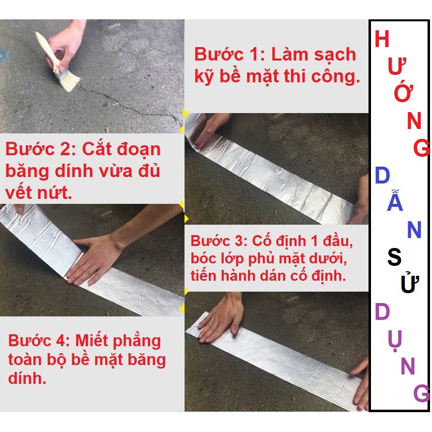 ️Từ 17/8/2019 Hóa đơn từ 99k bên Shop đã đc miễn phí ship. - Khi bạn đặt hàng nhớ kiểm tra xem còn phiếu giảm giá >>> free ship nào ko, đặt cho tiết kiệm.✨✨✨ Lưu ý bên mình là loại to Khổ 10Cm x 5M SẢN PHẨM ĐANG RẤT HOT TRÊN MẠNG GẦN ĐÂY NHỜ CÁC ĐẶC TÍNH ƯU VIỆT THÔNG TIN SẢN PHẨM - Tên sản phẩm: WaterProof Trap Paste - Đóng gói theo cuộn - Rộng 10cm Dài 500 cm - Độ bền 10 năm kể cả trong điều kiện ngoài trời TÍNH NĂNG SẢN PHẨM - Keo dính cực kỳ chắc, đã dán là không thể bóc ra được, chịu nước, chịu nhiệt, chống thấm hoàn hảo. - Bịt lại tất cả các lỗ thủng, lỗ hổng cả to, cả nhỏ hay các vết nứt, hở hoặc bị vỡ... - Sử dụng trong các môi trường ẩm ướt, khô, nóng, lạnh và thậm chí là cả dưới nước - Ngay cả khi vật dụng đang bị rò rỉ không cần phải đóng hay tắt khóa van nước, chỉ cần dán đè miếng băng dính lên chỗ bị thủng là mọi việc sẽ được giải quyết nhanh gọn - Sử dụng trên tất cả các chất liệu: Kim loại, nhựa, gỗ, cao su, kính, tường, bê tông, gạch men, gốm sữ, vải bạt, mái tôn, inox ... kể cả trên bề mặt sơn chống dính - Không như loại băng dính, băng keo khác sẽ mất tác dụng hoặc bong tróc sau một thời gian sử dụng. Băng keo WaterProof Trap Paste có độ dai và đồ bền vô cùng tuyệt vời. - Có khả năng chịu nhiệt độ cao do có màng cách nhiệt ở trên cùng ( từ âm 40 °C đến 110 °C - Rất phù hợp để dán trên mái tôn là nơi thường sẽ phải chịu ảnh hưởng bởi nhiệt độ cao đo tiếp xúc trực tiếp ánh sáng mặt trời - Băng keo dài 5m có thể đủ sử dụng trong nhiều năm cho những lỗi dò dỉ nhỏ bất ngờ ỨNG DỤNG TRONG GIA ĐÌNH VÀ TRONG CÔNG NGHIỆP - Vá mái tôn bị thủng, bị dột khi trời mưa - Bịt tường, trần nhà bị nứt tránh ngấm nước mưa - Bịt ống gió bị hở, ống nước bị vỡ (kể cả ống nước nóng), chậu hoặc xô bị thủng… - Vá bể nước bằng inox hoặc bê tông bị thủng hoặc bị giò rỉ nước - Xử lý các vết thủng hoặc bị châm kim đối với Phao bơi, bể bơi cao su, các con thú bơm hơi, các vận dụng gia đình hoặc các đồ chơi bơm hơi khác... - Dán bạt ô tô, bạt đầm nuôi tôm bị thủng - Dán chống thấm nội ngoại thất Ô tô - Vá các vết nứt, vết rạn ở mọi vật dụng và hàng trăm các vấn đề khác trong gia đình một cách nhanh chóng HƯỚNG DẪN SỬ DỤNG - Để băng keo đạt hiệu quả cao nhất khách hàng cần lưu ý 1 số vấn đề sau + Nên vệ sinh sạch bề mặt cần dán trước để băng keo đạt độ dính hoàn hảo nhất + Đo hoặc ướm thử độ dài vị trí cần dán rồi mới cắt băng keo. Cố gắng dán 1 lần là được luôn vì đã dán là rất rất khó để bóc ra + Xé giấy ở 1 đầu rồi vừa dán vừa kéo giấy khỏi băng keo cùng tác động một lực vừa phải
