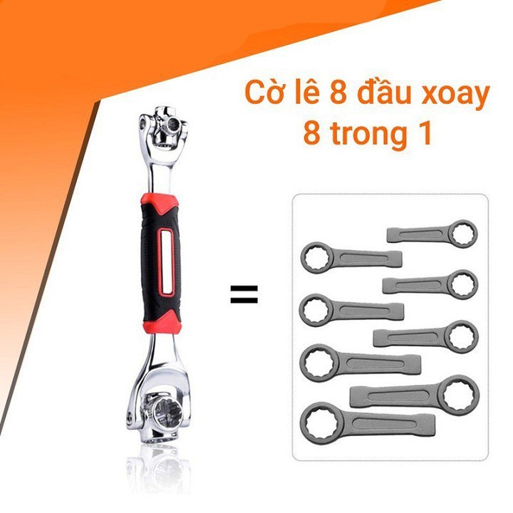 ️Cờ Lê Vạn Năng là sự kết hợp tổng hợp của 8 loại cờ lê kích cỡ khác nhau Gồm (8mm,10mm,11mm,13 mm,14 mm,16 mm,17 mm,19 mm ). Chi tiết sản phẩm : • Được thiết kế xoay 360 độ dễ dàng thay đổi đầu vặn linh hoạt với 8 đầu kích thước khác nhau , Có thể vặn được các loại ốc có đường kính từ (8 – 19)mm. • Độ cứng cao, chịu lực tốt, các đầu khẩu được gia công rất tỉ mỉ và tinh xảo, không gây trầy xước bu lông trong khi sửa chữa. • Chiều dài và góc vặn 45 độ lí tưởng giúp bạn dễ dàng cầm nắm và vặn những con ốc ở những nơi góc ngách nhỏ, trợ lực tối đa với đầu vặn thiết kế dạng bánh . • Vặn được nhiều loại ốc khác nhau thay thế cho nhiều chiếc cờ lê bình thường. • Với cờ lê 8 đầu xoay đa năng 8 trong 1 này bạn có thể vặn được nhiều loại ốc vít trong gia đình, hay trong công việc sửa chữa xe máy, ô tô, xe đạp...vv • Tay cầm thoải mái được thiết kế chống trượt có các đường tạo nên độ ma sát lớn, giúp tay bạn không bị trơn tuột trong khi vặn ốc, vặn chắc bu lông một cách đơn giản mà không đòi hỏi nhiều sức lực. • Tiết kiệm nhiều chi phí trong khi phải mua tới 8 chiếc cờ lê với 8 kích cỡ khác nhau, không gian để đồ gọn gàng và thời gian tìm kiếm đồ khi sử dụng cũng tiện lợi. • Ngoài ra với sự gọn nhẹ và tiện lợi của chiếc cờ lê đa năng 8 in 1 này bạn có thể dễ dàng mang đi sửa chữa ở mọi nơi, mà không tốn nhiều diện tích trong túi đồ nghề của bạn.