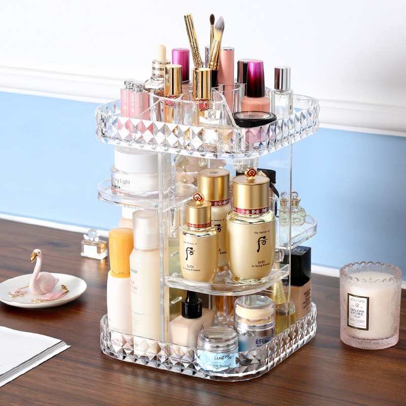 ️Khay đựng mỹ phẩm xoay 360 vuông - Chất liệu : mica ( acrylic ) xoay 360 độ - Kích thước : 22 x 22 x 32 cm - Được khắc tinh xảo viền khay , chịu lực tốt,, đế xoay 360 cực kỳ tiện lợi,,,
