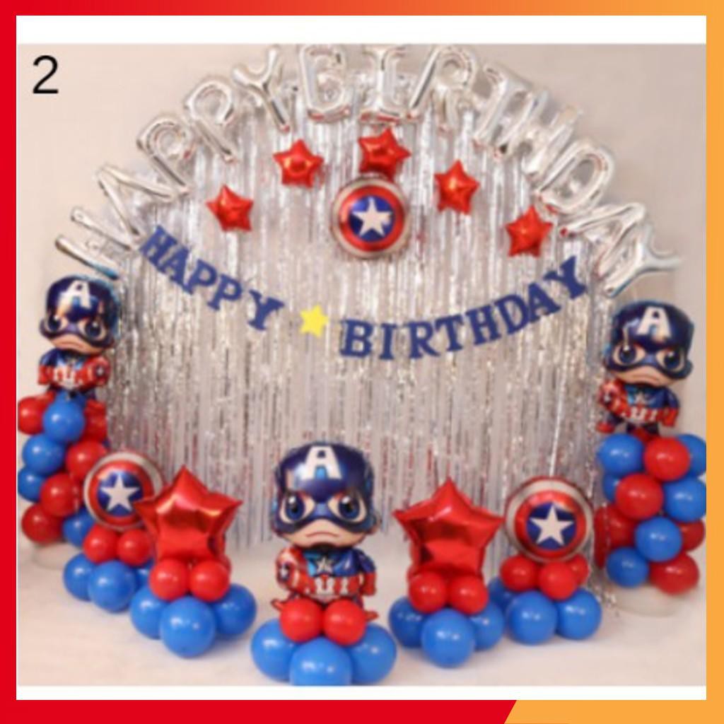 (Có sẵn) Set trang tri sinh nhật chủ đề siêu nhân -người nhện-đội trưởng mỹ cho bé trai