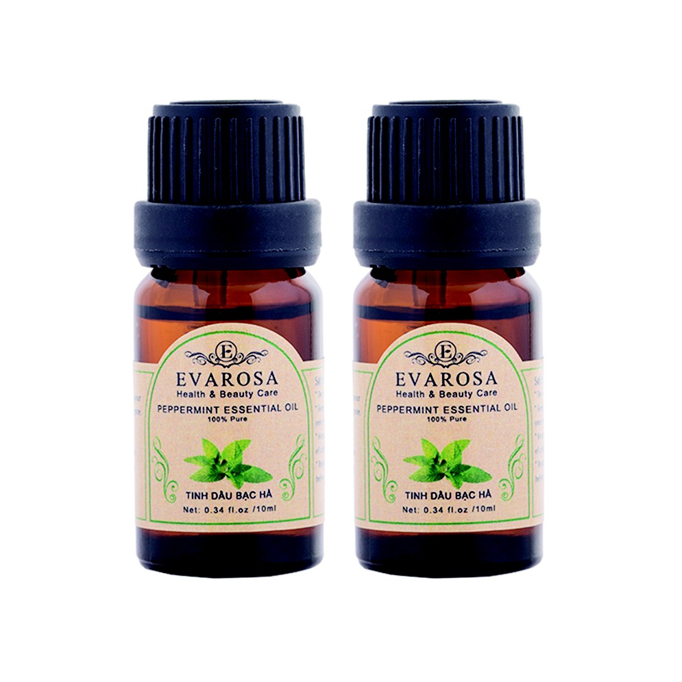 ️MÔ TẢ SẢN PHẨM Combo 02 Tinh dầu Bạc Hà EVAROSA chai 10ml Tên tiếng anh: Peppermint essential oil Thành phần: 100% tinh dầu nguyên chất. Phương pháp sản xuất: được chiết từ thân và lá Bạc hà, không chất tạo mùi, Xuất xứ: Ấn độ. Qui cách: 02 chai 10ml. Công dụng và hướng dẫn sử dụng Tinh dầu Bạc Hà EVAROSA: Giảm các triệu chứng của dị ứng: Dị ứng với phấn hoa: khuếch tán tinh dầu bạc hà + tinh dầu đinh hương bằng máy khuếch tán hoặc đèn đốt tinh dầu, giúp thư giãn các cơ mũi và làm sạch phấn hoa. Ngứa do dị ứng: Tương tự với cách sử dụng trên kết hợp 2 loại tinh dầu bạc hà và oải hương giúp làm giảm cơn ngứa. Giảm đau nhức xương khớp: Thay vì sử dụng túi chườm đá để giảm đau nhức xương khớp, có thể trộn tinh dầu bạc hà và oải hương theo tỷ lệ 1:1, massage nhẹ nhàng vào các khớp giúp giảm cơn nhức, đồng thời giữ ấm và khô. Trị bệnh hiệu quả: Thuốc hạ sốt: cho vào lòng bàn tay cùng một lượng tinh dầu Bạc Hà và dầu dừa, sau đó xoa nhẹ nhàng vào cổ và lòng bàn chân của trẻ em, giúp làm giảm cơn sốt thay cho thuốc aspirin. Giải cảm, ho, đau đầu: cho 1-3 giọt tinh dầu vào chậu nước nóng và xông hơi trong khỏang 10 phút. Thành phần methol và 1,8 cineole có trong tinh dầu giúp khắc phục nhanh chóng các bệnh liên quan đến đường hô hấp. Giải quyết các vấn đề về tóc: Vào buổi sáng, sử dụng 2-3 giọt tinh dầu cho vào dầu gội đầu. Hương thơm the mát trong tinh dầu bạc hà giúp kích thích não hoạt động hiệu quả, đồng thời tính sát khuẩn của tinh dầu giúp giải quyết các vấn đề về da đầu như gàu, dầu nhờn, rận và nuôi dưỡng tóc chắc khỏe. Đuổi muỗi, chuột vô cùng hiệu quả: Thường xuyên khuếch tán tinh dầu bạc hà bằng máy hoặc bằng bình xịt vào những nơi nhiều muỗi. Để đuổi chuột, dùng tinh dầu bạc hà nguyên chất tẩm vào một miếng mút, sau đó đặt vào nơi chuột hay bò qua. Chống buồn nôn, say xe: Cho 1 giọt tinh dầu bạc hà vào lòng bàn tay, xoa nhẹ, sau đó hít thở đều trong khoảng 1 phút hoặc có thể bôi tinh dầu ở mang tai, cổ để giảm say xe. Giúp hơi thở thơm mát: Cho 1-2 giọt tinh dầu bạc hà vào cốc nước ấm, dùng hỗn hợp này súc miệng, giúp làm sạch khoang miệng, giảm sâu răng và tạo hơi thở thơm mát. Lưu ý: Để xa tầm tay trẻ em. Không sử dụng trực tiếp để uống và thoa vào các vết thương hở. Nếu vô tình làm vấy vào mắt, nhanh chóng rửa sạch và gặp bác sĩ để tư vấn chữa trị. Lưu ý sản phẩm không thể thay thế thuốc chữa bệnh. Bảo quản: nơi khô ráo, thóang mát. Tránh tiếp xúc trực tiếp với ánh sáng.