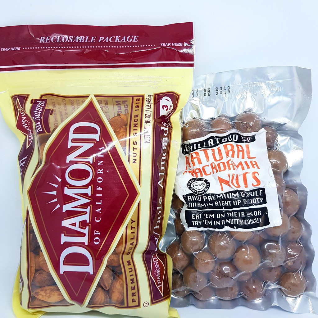️Combo gồm: + 1 Bịch Macca Mỹ 454gr + 1 Bịch Hạnh Nhân rang bơ Mỹ: 453gr -------------------------------------------------- **Cùng tìm hiểu 8 công dụng của hạt hạnh nhân: 1- Cân bằng lượng Cholesterol trong cơ thể. Dùng hạnh nhân đều đặn hàng ngày sẽ giúp bạn tăng hàm lượng Cholesterol tốt (HDL), giảm đáng kể hàm lượng Cholesterol xấu (LDL) và do đó khiến chúng ta kiểm soát hữu hiệu mức Cholesterol trong máu. 2- Hạt hạnh nhân rất tốt cho tim. Trong hạt hạnh nhân có chứa chất béo đơn-bão hoà, protein và potassium, là những chất hỗ trợ rất tốt cho khả năng vận động của tim. Vitamin E trong hạnh nhân tác động như một chất chống oxi-hóa, giúp giảm nguy cơ bị các bệnh tim. Hạnh nhân cũng còn là nguồn cung cấp Acid folic và Magnesium, và do đó giúp hạ thấp mức Homocystein, một loại chỉ số nói lên mức độ đóng mảng trong mạch máu. 3- Hạt hạnh nhân giúp cân bằng và điểu hòa huyết áp. Potassium chứa trong hạnh nhân giúp điều hòa huyết áp. 4- Ăn hạt hạnh nhân đều đặn hàng ngày có thể giúp bạn phòng chống một số loại bệnh ung thư, điển hình là ung thư kết tràng. 5- Hạt hạnh nhân tốt cho thai nhi: Trong hạnh nhân có chứa chất acid- folic, một loại hơp chất giúp bà mẹ bổ sung dinh dưỡng cho thai nhi và giảm các khuyết tật bẩm sinh của em bé. 6- Giảm béo: Tinh dầu hạnh nhân và các chất chứa trong hạt hạnh nhân làm cho bạn ăn có cảm giác chóng no nên giúp tránh ăn quá nhiều. Các nghiên cứu cho thấy thực tế những người béo phì nên thường xuyên bổ sung hạt hạnh nhân vào khẩu phần ăn hàng ngày để kiểm soát hiệu quả trọng lượng cơ thể. 7- Hạnh nhân có chất xơ, giúp bạn chống táo bón hiệu quả. 8- Nghiên cứu của các nhà khoa học trên động vật cũng chỉ ra rằng hạt hạnh nhân cũng có thể phòng ngừa sạn mật, giảm rủi ro mắc bệnh Alzheimer, làm đẹp da và tăng cường chức năng hệ miễn dịch. -------------------------- Xuất Xứ: Mỹ Trọng Lượng: 1000gr HSD: 1 Năm kể từ ngày sản xuất #hatdinhduong #hạt_hạnh_nhân #hạnh_nhân , #hạnh_nhân_chín #hanhnhanbo #hanhbomy #hanhnhan #hanhnhandiamond #diamond