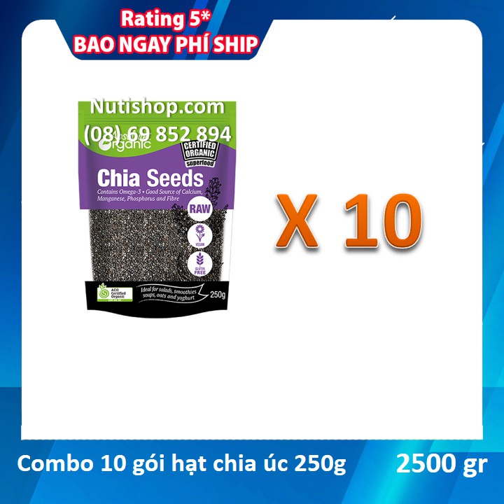 ️Mô tả sản phẩm Trọng lượng 250g xuất xứ: Úc HSD: 15/06/2020 ( liên tục cập nhật date mới nhất) Hạt Chia hay còn gọi là Salvia Hispaniola là thực phẩm chứa nhiều chất dinh dưỡng hiếm có trong thế giới thực phẩm, đặc biệt là những chất mà chúng ta khó có thể bổ sung được bằng thuốc bổ như: Đạm cao nhưng không chứa #Cholesterol; Các loại khoáng chất (phốt pho, Canxi, Sắt,…); Chất xơ gấp 3,5 lần chất xơ so với yến mạch; Omeg-3-6-9 (gấp 8 lần cá hồi); Chất chống oxy hoá ngang bằng với quả Bluberries. Dựa trên những thông tin trên mà các nhà nghiên cứu Úc đã cho ra đời sản phẩm Chia Seeds Absolute Organic nhằm bổ sung thêm những chất dinh dưỡng có lợi cho sức khoẻ và dành cho những người bị tiểu đường, huyết áp,… Hạt Chia có lợi cho nhiều đối tượng: người già, người có bệnh lý tiểu đường hoặc tim mạch, phụ nữ có thai và cho con bú, trẻ em, người lao động nặng về thể lực và trí lực… Công dụng: + Chia Seeds tốt cho sự phát triển trí não, thích hợp cho trẻ em và người già. + Giúp tăng cường sức khoẻ, giảm cân, không những thế còn giúp các cơ trở nên săn chắc hơn. + Chống lão hoá da, cải thiện sức sống cho làn da của bạn, phục hồi thể lực cho người mới ốm dậy, người thường xuyên mệt mỏi. + Ổn định đường huyết, tốt cho những bệnh nhân mắc bệnh tiều dường và các bệnh về tim mạch. + Tăng cường sữa cho phụ nữ sau khi sinh, chống táo bón,… Thành phần dinh dưỡng: + Dưỡng chất Omeg 3 trong hạt Chia cao hơn gấp nhiều lần so với các loại thực phẩm khác kể cả hải sản, không chứa các thành phần kim loại độc hại như ở hải sản, hàm lượng Natri thấp, hàm lượng Protein, chất béo, chất xơ và chất chống oxy hoá cao hơn cả quả việt quất,… + Chất đạm khá nhiều, dễ tiêu hoá hơn các loại thực phẩm từ thịt, các loại ngũ cốc, chính vì thế giúp cơ thể hồi phục nhanh chóng sau những tổn thương. + Hạt chia còn chứa hàm lượng lớn vitamin B và Canxi cao gấp 6 lần so với sữa nhưng lại dễ hấp thụ hơn so với sữa. Cung cấp các khoáng chất Mg, Fe, Cu,Zn,… Hướng dẫn sử dụng: + Lấy khoảng 1 thìa súp (10g) hạt Chia cho vào nước trái cây hoặc nước lọc, khuấy đều để không vón cục. Sau khoảng 10 phút, lúc này hạt Chia đã nở có lớp gel bao quanh hạt giống như hạt é là có thể dùng được. + Rắc hạt Chia lên salad, ngũ cốc, sữa chua, bánh ngọt hay bất kỳ loại thực phẩm nào đều được. Các bạn cũng có thể ăn hạt Chia cùng với cháo hoặc ăn trực tiếp rồi uống nhiều nước. + Có thể bảo quản hạt Chia dưới dạng gel trong 2 tuần bằng cách ngâm nở một lượng hạt cần dùng rồi cho vào hộp kín và bảo quản trong tủ lạnh. + Hạt Chia là loại thực phẩm thông thường, không phải là thực phẩm bổ sung vì vậy không có liều lượng khi sử dụng. Tuy nhiên tuỳ theo lý do sử dụng thì lượng tiêu thụ sẽ khác nhau, ví dụ: - 10g/1 ngày sẽ cung cấp thêm Omeg 3, cân bằng lượng Omeg 6. - 10g-25g/1 ngày sẽ trợ giúp các vận động viên trong quá trình tập luyện. Cam kết về dịch vụ của shop 7 ngày đổi trả Cho xem hàng trước khi nhận 100% sản phẩm giống mô tả