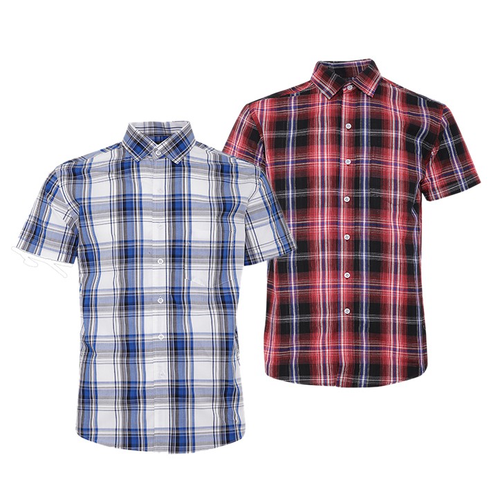 Combo 2 Áo Sơ Mi Nam Sọc Caro Gabofashion Cao Cấp CSMI320 (Xanh TRANG Va SỌC ĐỎ SẬM) - Ngắn tay