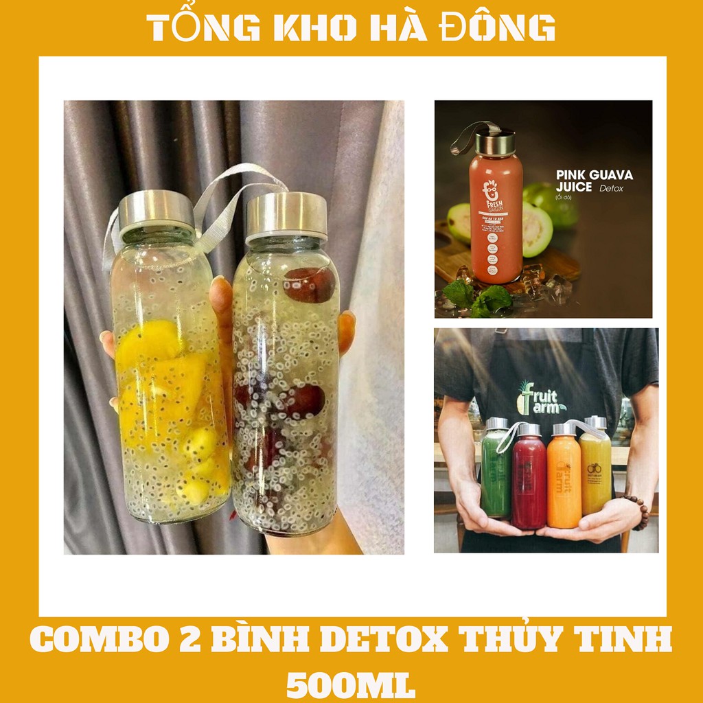 ️TỔNG KHO HÀ ĐÔNG --------------------------------------------- COMBO 2 BÌNH DETOX THỦY TINH CÓ QUAI XÁCH 500ML Thiết kế gọn nhẹ và cực kì tiện dụng, in hình đáng yêu, thuận tiện hơn khi di chuyển. Sản phẩm vừa vặn trong lòng bàn tay, rất thích hợp để mang đi học, đi làm, hay đi chơi... Thủy tinh cao cấp, trong suốt, sáng bóng, chịu nhiệt tốt, không bọt khí, độ bền cao, có thêm ron cao su giúp đậy kín không làm DUNG TÍCH : 500ML