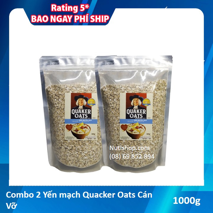 Combo 2 gói yến mạch Quaker Oats cán vỡ 500g