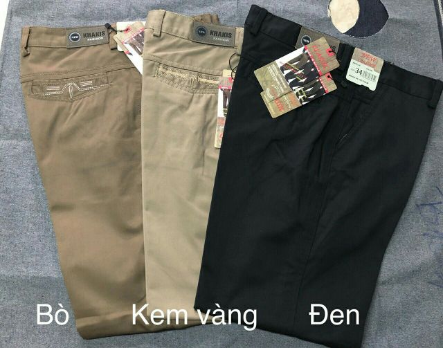 ️Quần kaki dài dành cho nam từ 28 - 65 tuổi Kiểu dáng trang nhã, lịch sự có 6 màu lựa chọn như hình. Size từ 28- 34 Không bai dão, không phai màu, bao giặt máy (nhớ lộn bề trái ra giặt nhé). Ship hàng toàn quốc.