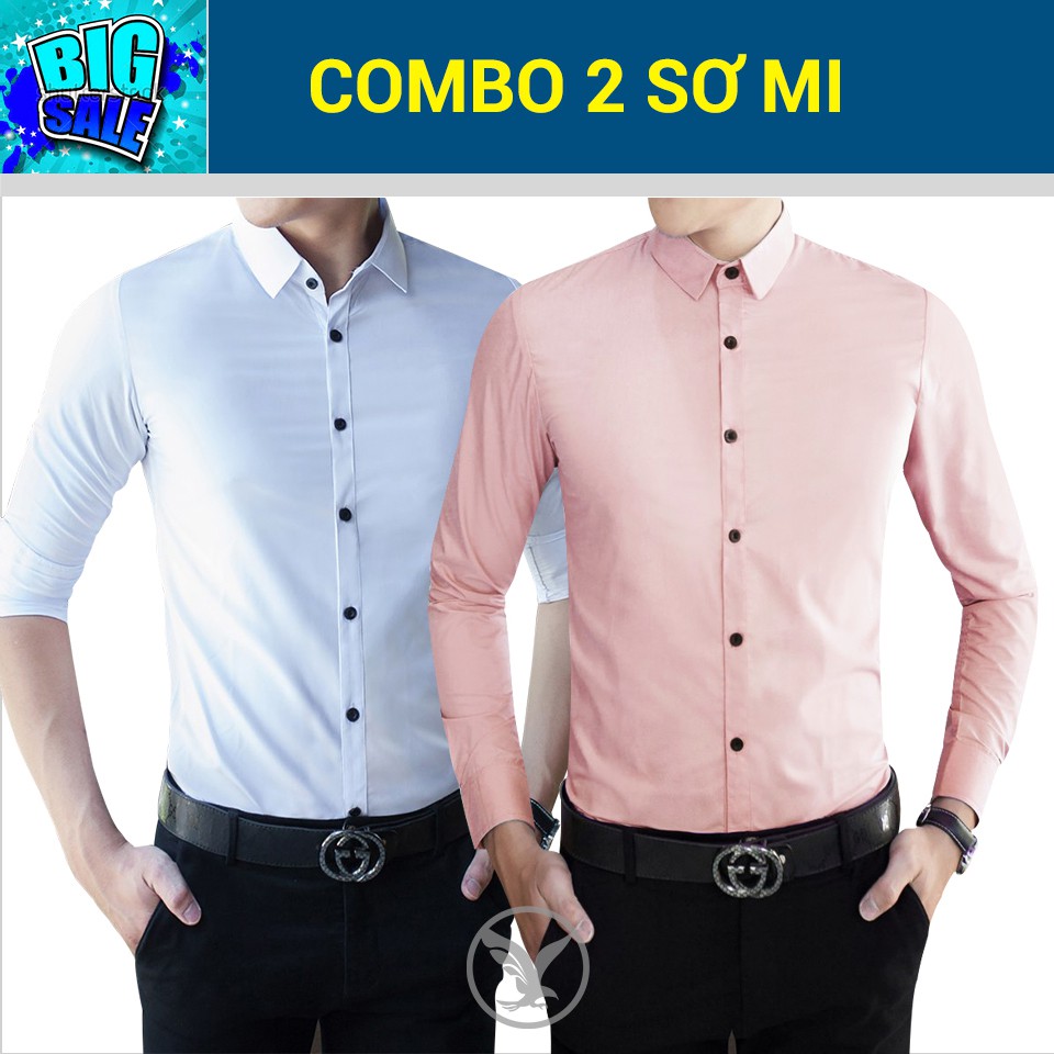Combo 2 sơ mi (trắng + hồng phấn) lịch lãm - Dài tay