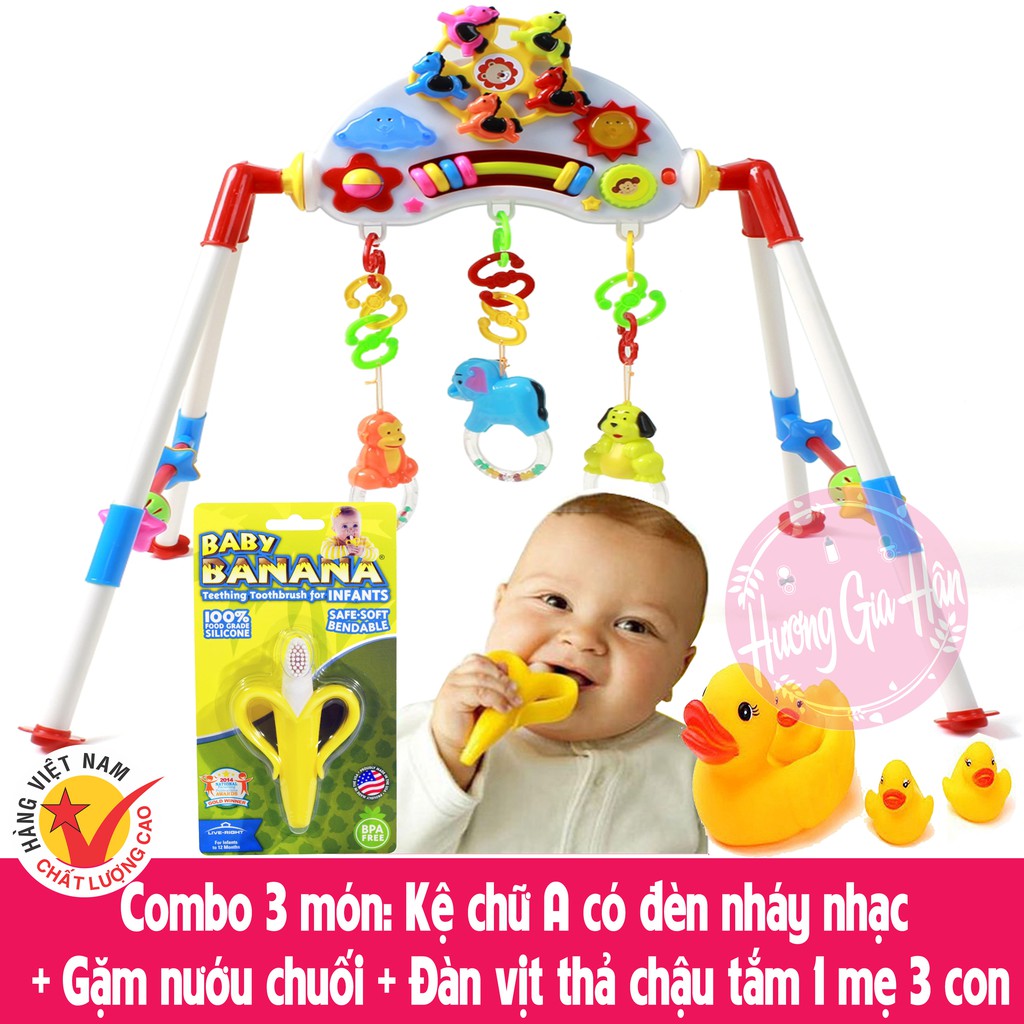 ️Combo 3 món: Kệ chữ A có đèn nháy nhạc + Gặm nướu chuối USA + Đàn vịt chíp chíp thả chậu tắm 1 mẹ 3 con ?Hàng shop được đóng hộp an toàn hơn các shop không đóng hộp dễ vỡ ?❌Vì sao kệ chữ A có nhạc giúp bé thông minh hơn ⁉️‼️ ?Các chuyên gia nghiên cứu Nhi khoa trên thế giới khuyến khích, trong năm đầu tiên bố mẹ nên cho bé được làm quen và tiếp xúc với âm nhạc và màu sắc để giúp bé tăng cường khả năng nhận biết, tạo điều kiện phát triển khả năng tư duy của não bộ cho bé phát triển tốt hơn sau này. ?Kệ chữ A không rõ nguồn gốc sẽ gây ảnh hưởng sức khoẻ bé vì nhựa độc hại ‼️ Bố mẹ phải làm sao➥ ⁉️ K ????Hương Gia Hân shop xin giới thiệu bố mẹ các mẫu kệ chữ A Việt Nam có nhạc an toàn chính hãng có kiểm định nhựa không độc tố xua tan nỗi lo đồ độc hại cho bé ⚡️ ✅Giúp bé phát triển âm thanh màu sắc , có nhạc đèn , nhiều con vật ngộ nghĩnh.Hàng Việt Nam an toàn được kiểm định chất lượng được làm từ nhựa cao cấp an toàn cho bé Sản phẩm dạng khung hình chữ A được treo các con thú Voi, Chó, Khỉ. Giúp bé phát triển thị giác, âm thanh, màu sắc, vận động Em bé vừa nằm vừa quan sát vừa chơi được với các con thú treo này. Sản phẩm có phát ra tiếng nhạc và ánh sáng nhấp nháy tạo cảm giác thích thú cho bé. Xuất xứ: Việt Nam Kích thước: 50cm x 80cm x 30cm (cao x dài x rộng) Khối lượng bao bì: 1.1 kg Chất liệu: Nhựa cao cấp Số lượng chi tiết: 127 Sản phẩm này an toàn phù hợp giá tiền ???????Các bạn ở xa shop sẽ đóng hộp an toàn không vỡ nhé #kechuaphatnhac #kechua ⚠️⚠️⚠️giá rẻ nhất shopee và toàn quốc được gói kĩ chắc chắn hơn các shop khác nhé các bạn. #dochoichobe #shopee