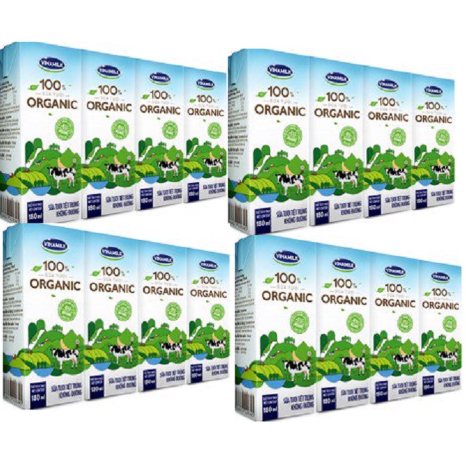 ️Sữa tươi Vinamilk 100% Organic cao cấp theo tiêu chuẩn hữu cơ Châu Âu lần đầu tiên được sản xuất ngay tại Việt Nam. - Không sử dụng hoc-moon tăng trưởng cho bò. - Không dư lượng thuốc kháng sinh. - Không thuốc trừ sâu. Với quy trình sản xuất sữa nghiêm ngặt theo tiêu chuẩn organic Châu Âu, sản phẩm Sữa tươi Vinamilk Organic mới hoàn toàn thuần khiết và giàu các dưỡng chất tự nhiên tốt cho sức khỏe. Quy cách thùng: 4 lốc, 4 hộp 180ml/lốc Hsd:6 tháng Xuất sứ: Việt Nam