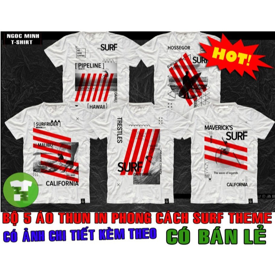 ️ÁO THUN NGỌC MINH - XƯỞNG IN ẤN CHUYÊN PHÂN PHỐI ÁO THUN TRƠN/ÁO THUN IN (Theo yêu cầu) VỚI GIÁ SỈ MÔ TẢ KHÁI QUÁT SẢN PHẨM +5 áo thun cổ tròn, tay ngắn in phong cách Surf Theme (chủ đề thể thao lướt ván), với họa tiết được thiết kế là hình ảnh của môn thể thao lướt ván trên các bãi biển nổi tiếng thế giới bằng hai gam màu đen trắng chủ đạo, điểm thêm các dải sọc đỏ rất thể thao, cá tính và họa tiết chữ nổi thuộc bộ sưu tập nổi tiếng và vô cùng đẳng cấp của YOURBRAND - hình in được nhập khẩu nguyên gốc, độc quyền từ đại lý. + CÓ BÁN LẺ (GIÁ BÁN LẺ: 45.000đ) NẾU QUÝ KHÁCH CÓ NHU CẦU. XIN HÃY NHẮN TIN VỚI SHOP VÀ TRẢ GIÁ 45.000x1 + Chi tiết combo: 1. Áo in hình SURF bãi biển PIPELINE của HAWAII 2. Áo in hình SURF bãi biển HOSSEGOR của PHÁP 3. Áo in hình SURF bãi biển MALIBU của CALIFORNIA 4. Áo in hình SURF bãi biển TRESTLES của CALIFORNIA 5. Áo in hình SURF bãi biển MAVERICK'S của CALIFORNIA (Xem hình ảnh chi tiết hơn, Shop có đính kèm sau ảnh bìa) (Có thể in theo yêu cầu của quý khách nếu muốn) +Đủ mọi size 1, 2, 3, 4, 5, XS, S, M, L, XL cho mọi kích thước cân nặng + Nam hay nữ đều mặc được (unisex) - chỉ cần chọn size phù hợp là mặc đẹp +Chất liệu 65% cotton và 35% poly co giãn 4 chiều, vải láng mịn, mát, thấm hút tốt, không xù lông. Đường may tỉ mỉ. + Với những mẫu hình được THIẾT KẾ ĐỘC QUYỀN bởi ÁO THUN NGỌC MINH. + Hình in sắc nét, màu sắc rực rỡ, trung thực và cực kì bền màu (nếu bảo quản đúng cách). + Kết hợp với nhiều loại trang phục mặc dưới như quần jean, quần tây, váy... + Giá chỉ áp dụng cho áo thun SÁNG MÀU như (trắng/hồng nhạt/vàng nhạt/xanh dương/xanh chuối/xám nhạt...) + Còn đối với loại áo thun tối màu (đặc biệt là đỏ/đen/tím đậm, xanh đậm...), xưởng chúng tôi không thể áp dụng công nghệ in chuyển nhiệt bình thường được, mà phải in theo dạng cắt đề can (decal) nên giá sẽ cao hơn chút. (Nếu bạn chưa hiểu tại sao, hãy lên mạng tìm hiểu công nghệ in chuyển nhiệt lên áo thun nhé !) -Rất nhiều khách thắc mắc "vì sao áo thun in hình theo yêu cầu mà giá lại rẻ vậy?". Sở dĩ giá rất rẻ là do doanh thu chúng tôi đến từ số lượng, chúng tôi nhập áo trực tiếp từ nhà may và KHÔNG QUA TRUNG GIAN NÀO CẢ nên mới bán giá sỉ đến cho mọi người được. Lý do đơn giản là vậy thôi ạ. - Xin khẳng định ! Nếu shop bán hàng kém chất lượng, xin chịu mọi quy định về mức phạt/chế tài theo quy định của shopee ! - Mọi khiếu nại đổi trả của người bán nếu đúng là lỗi do shop, xin hoàn tiền và thực hiện theo yêu cầu đổi trả cho quý khách đúng theo quy định của shopee ! * Đặc biệt: đến tại kho để được phân phối giá sát sỉ - 1 cái cũng giá sỉ Đặt mua áo thun xin nhắn tin với shop hoặc ghi trong phần yêu cầu/mô tả với 3 nội dung: + Hình in + Màu áo + Size áo CẢM ƠN BẠN ĐÃ THAM KHẢO ! #aothunngocminh #aothungiasi #aothunnam #aothuncotron #aothuncotton #aothunin #aothunnu #ao #thoitrangnamnu #aothun #aothuningiasi #ngocminhshop #aothunthethao #sports #aothunluotvan #aothunsurf #aothundibien #doboi